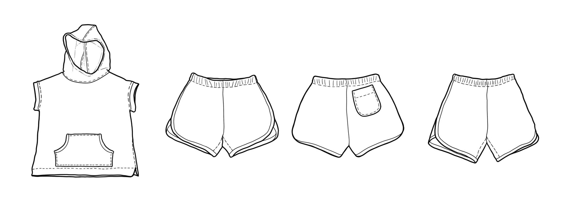 Cet ensemble est composé d’un short proposé en 2 longueurs et d’un t-shirt à capuche. La coupe est confortable et estivale. Look de surfeur en devenir !