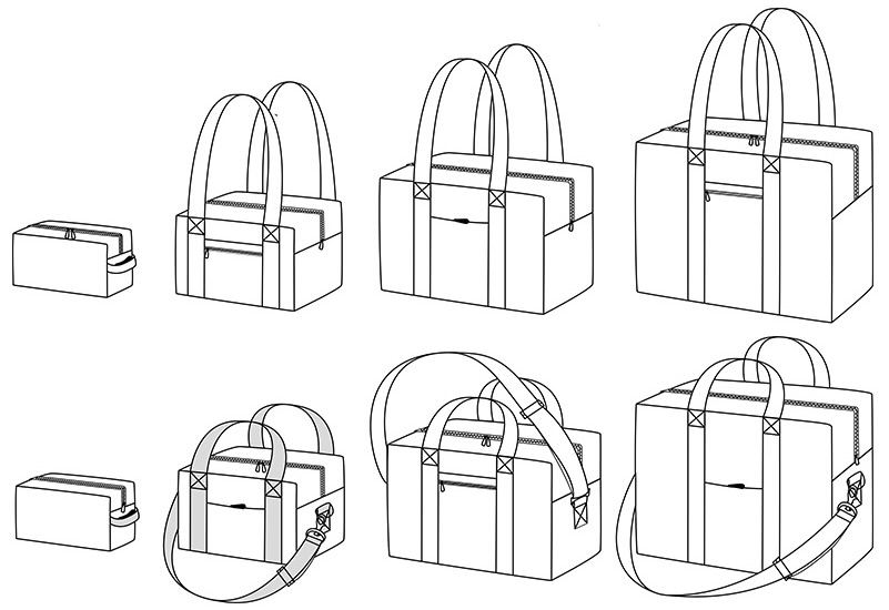 Deux longueurs d'anses sont possibles pour le sac : pour un porté épaule ou main, et une bandoulière optionnelle permettra un porté croisé.