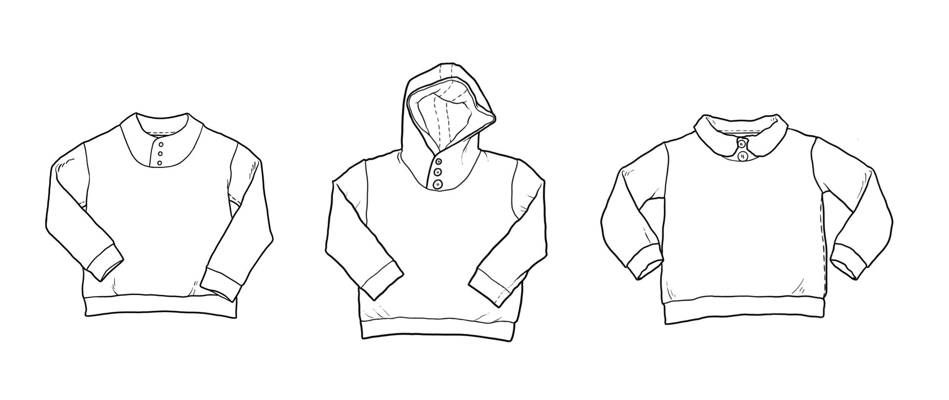 Ce sweat à la coupe loose et mixte propose 3 versions de col différents. En jouant avec les tissus, couleurs et matières vous pouvez donner le look que vous souhaitez à votre vêtement, en passant de l’effet colorblock au style preppy.